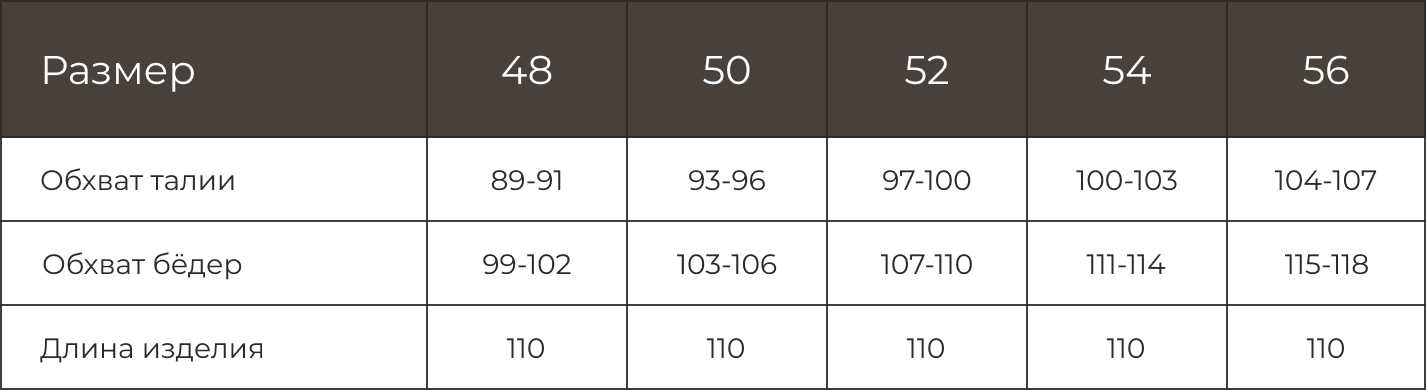 Размерная таблица