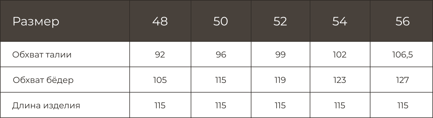 *Не распространяется на изделия с индивидуальной подгонкой по фигуре